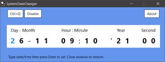 Allereerst en vooral is SystemDateChanger een draagbaar programma dat na het downloaden meteen kan worden gebruikt. Het wordt geleverd met een eenvoudige en compacte gebruikersinterface die gemakkelijk te begrijpen is. Van links naar rechts, de elementen die u kunt aanpassen, zijn de dag en maand gevolgd door uw uur en minuut. Vervolgens heb je jaar en zelfs seconden om de beschikbare opties voor je af te ronden.